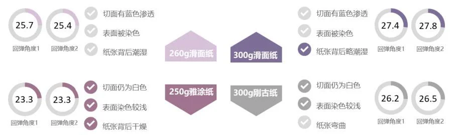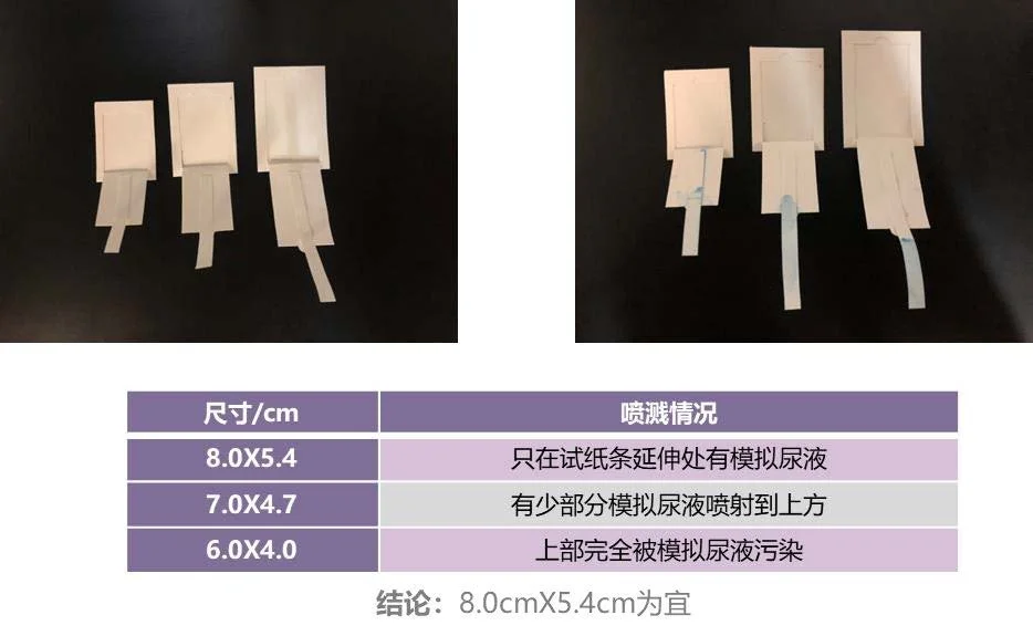 Material testing included multiple types of sponge paper, red/blue reagent strips, and contamination resistance.